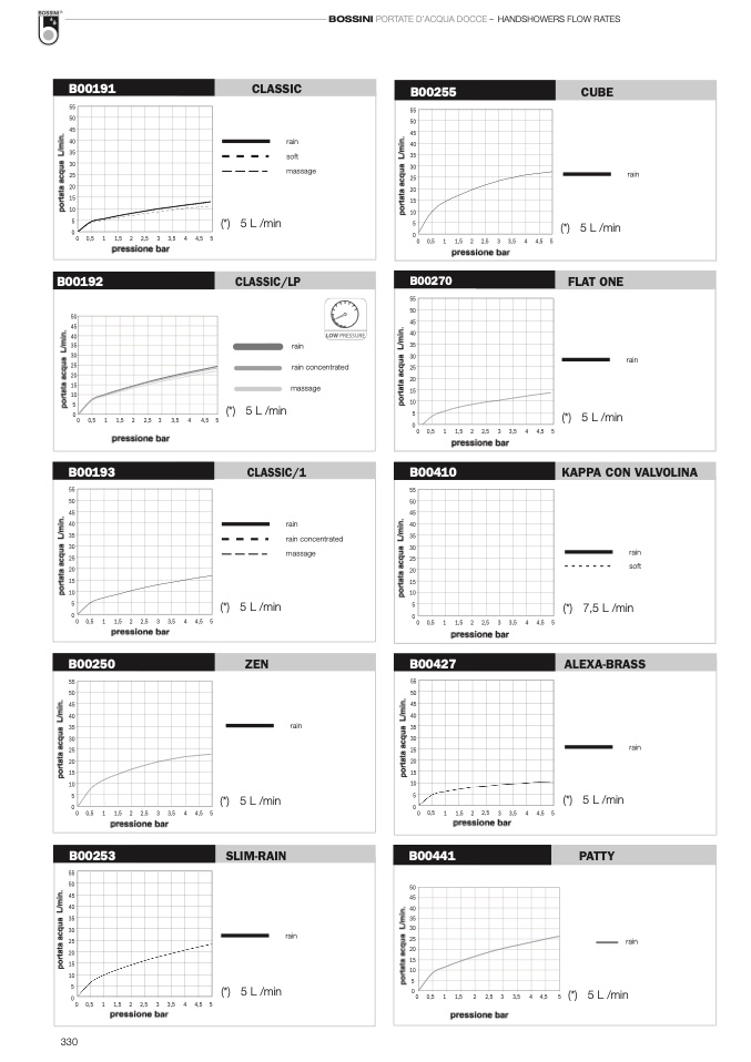 BOSSINI PORTATE D’ACQUA DOCCE – HANDSHOWERS FLOW RATES