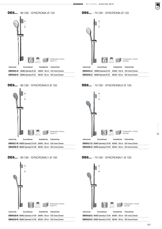 BOSSINI SET DOCCIA – SLIDE RAIL SETS