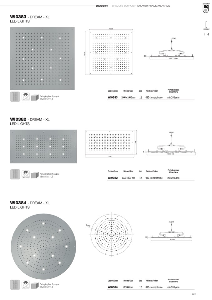 BOSSINI 1/2BGARSACCI E SOFFIONI – SHOWER HEADS AND ARMS