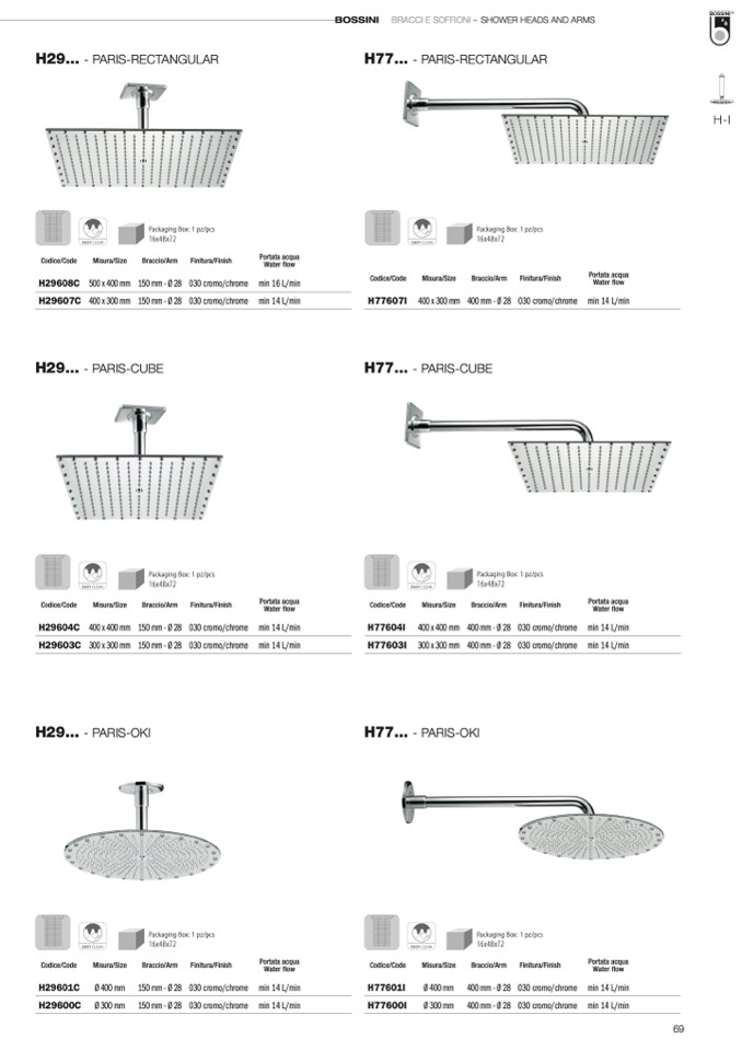 BOSSINI BRACCI E SOFFIONI – SHOWER HEADS AND ARMS