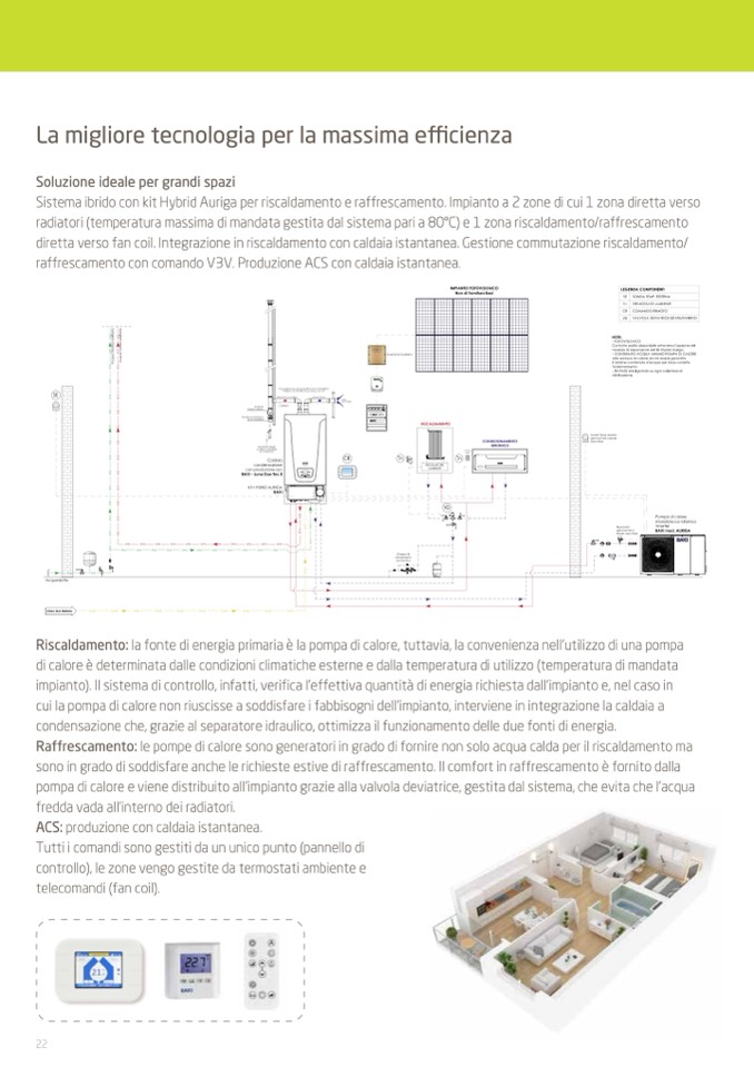 Sistema ibrido con kit Hybrid Auriga per riscaldamento e raffrescamento. Impianto a 2 zone di cui 1 zona diretta verso