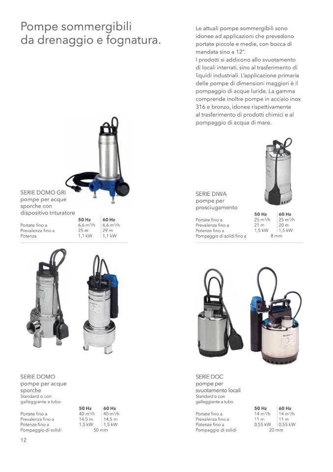 pompaggio di acque luride. La gamma