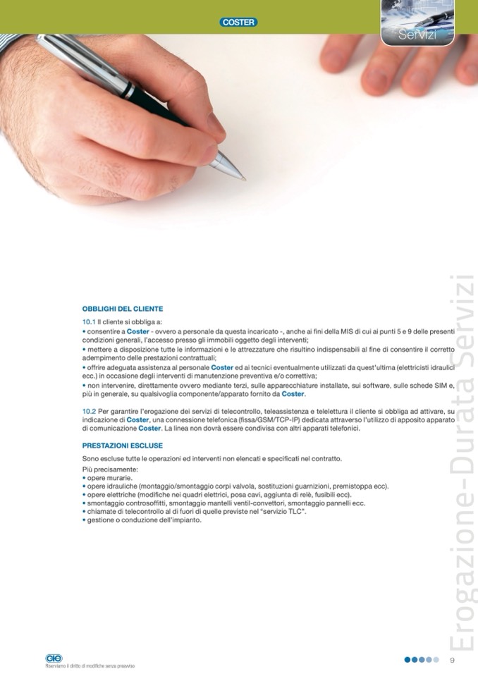 • offrire adeguata assistenza al personale Coster ed ai tecnici eventualmente utilizzati da quest’ultima (elettricisti idraulici