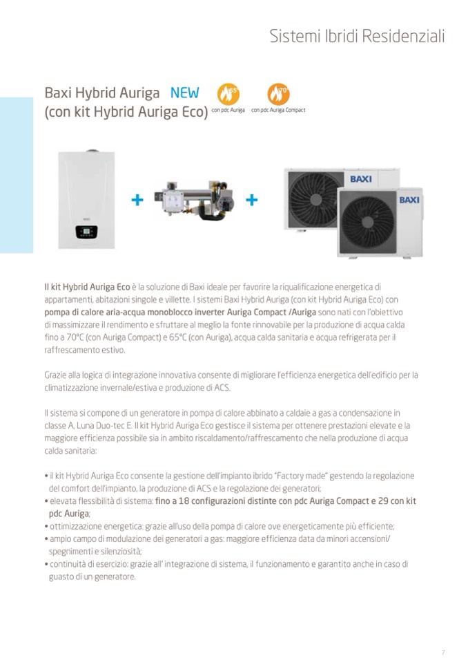 appartamenti, abitazioni singole e villette. I sistemi Baxi Hybrid Auriga (con kit Hybrid Auriga Eco) con