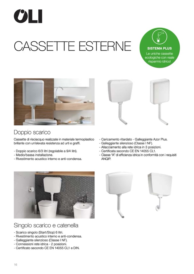 - Doppio scarico 6/3 litri (regolabile a 9/4 litri).