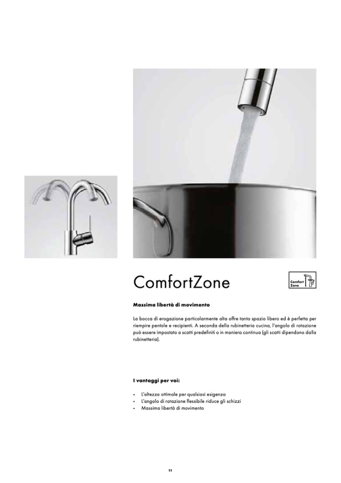 · L’angolo di rotazione flessibile riduce gli schizzi