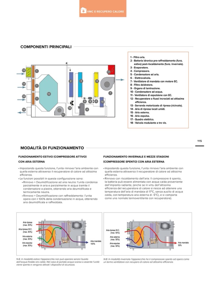 N.B. In modalità invernale l’apparecchio ha il compressore spento ed opera come