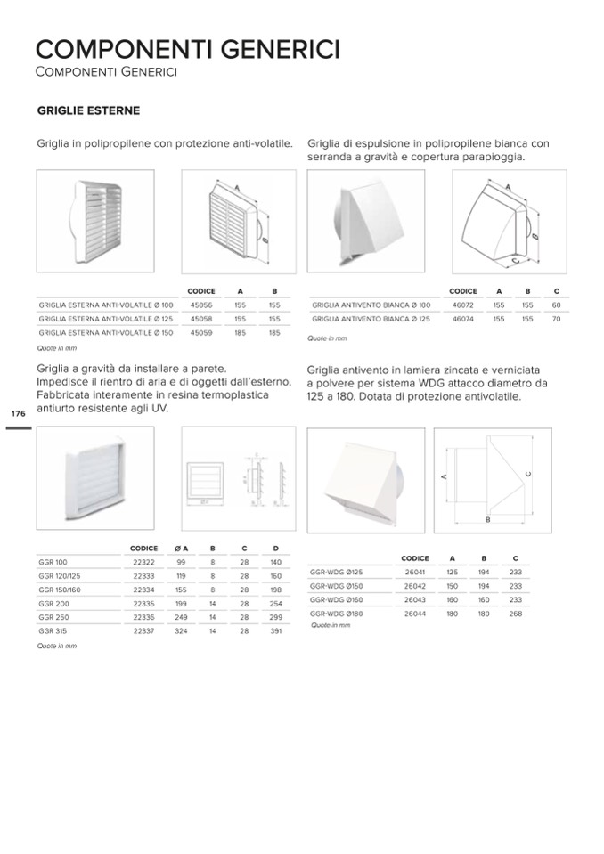 GRIGLIA ESTERNA ANTI-VOLATILE Ø 125