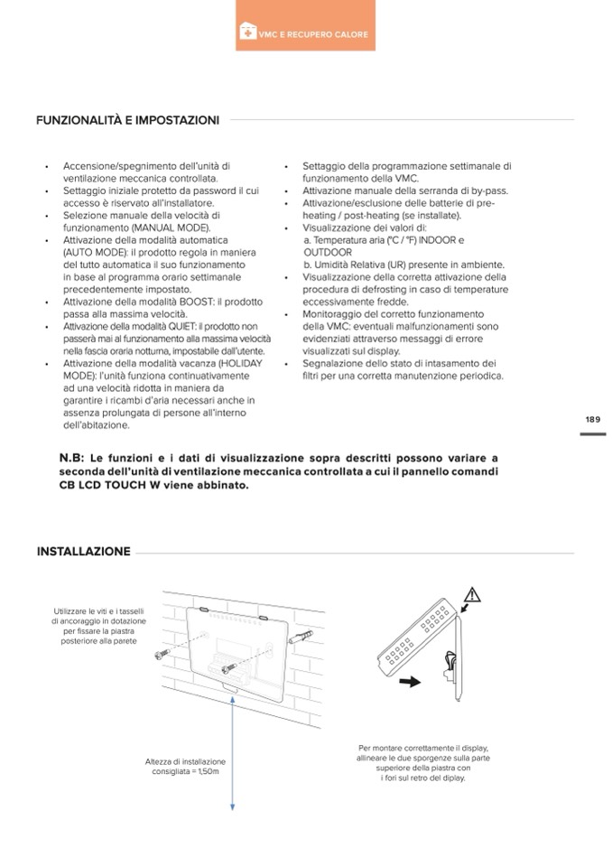 seconda dell’unità di ventilazione meccanica controllata a cui il pannello comandi