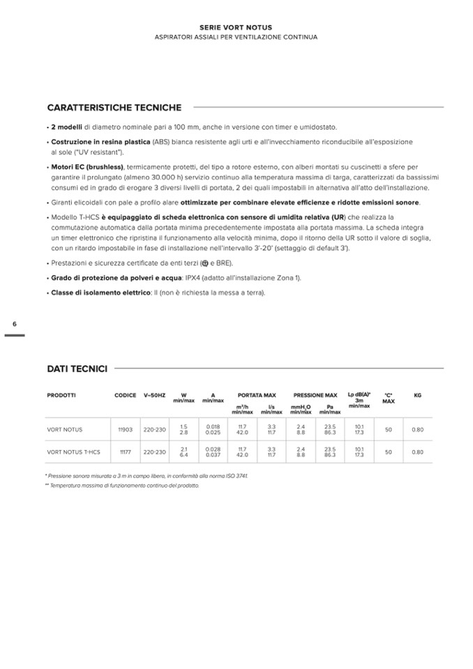 • 2 modelli di diametro nominale pari a 100 mm, anche in versione con timer e umidostato.