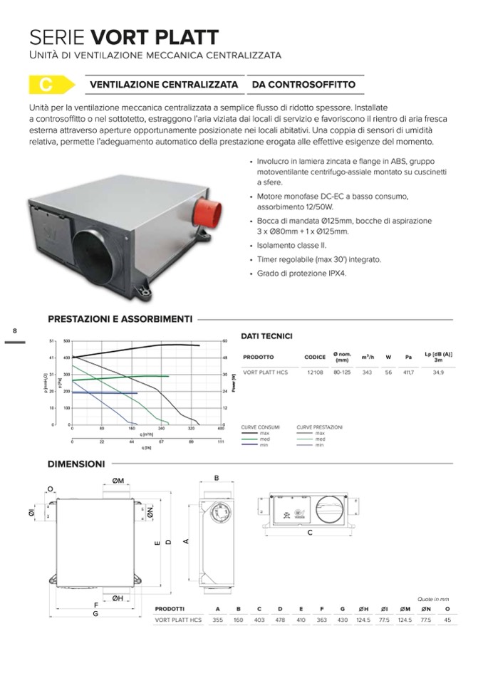 Unità per la ventilazione meccanica centralizzata a semplice flusso di ridotto spessore. Installate