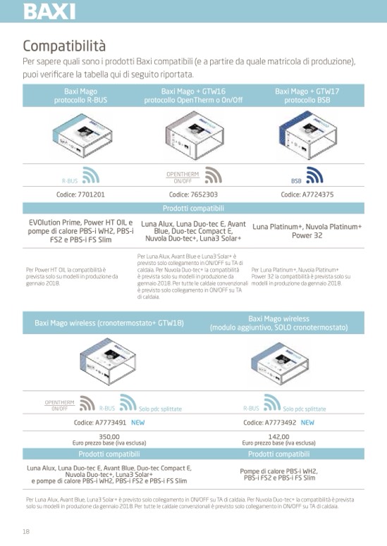 Per Luna Alux, Avant Blue, Luna3 Solar+ è previsto solo collegamento in ON/OFF su TA di caldaia. Per Nuvola Duo-tec+ la compatibilità è prevista