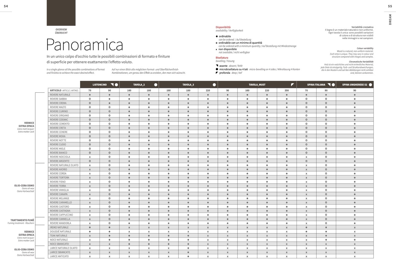Auf nur einen Blick alle möglichen Format- und Oberflächenfinish-