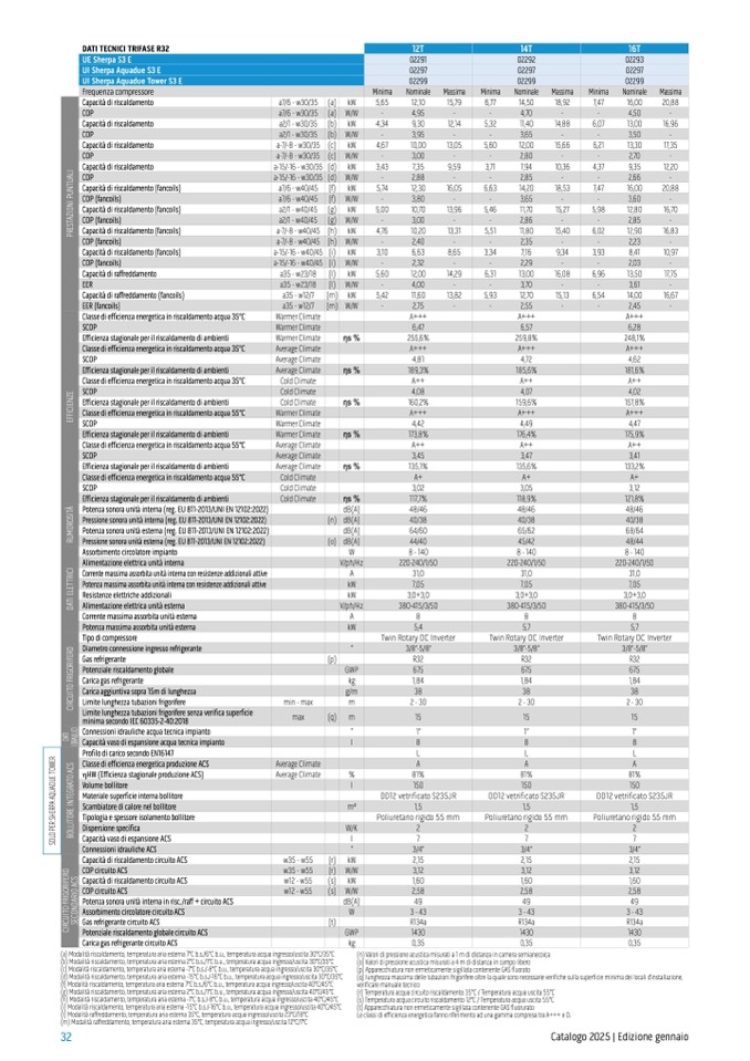 (a) Modalità riscaldamento, temperatura aria esterna 7°C b.s./6°C b.u., temperatura acqua ingresso/uscita 30°C/35°C