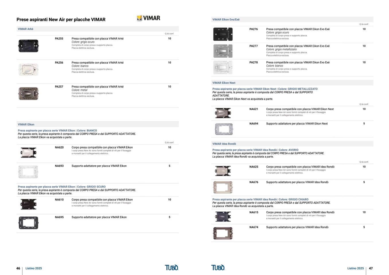 Per questa serie, la presa aspirante è composta dal CORPO PRESA e dal SUPPORTO ADATTATORE.