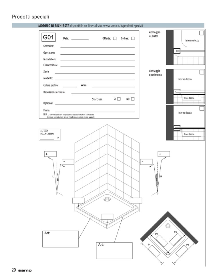 MODULO DI RICHIESTA disponibile on-line sul sito: www.samo.it/it/prodotti-speciali