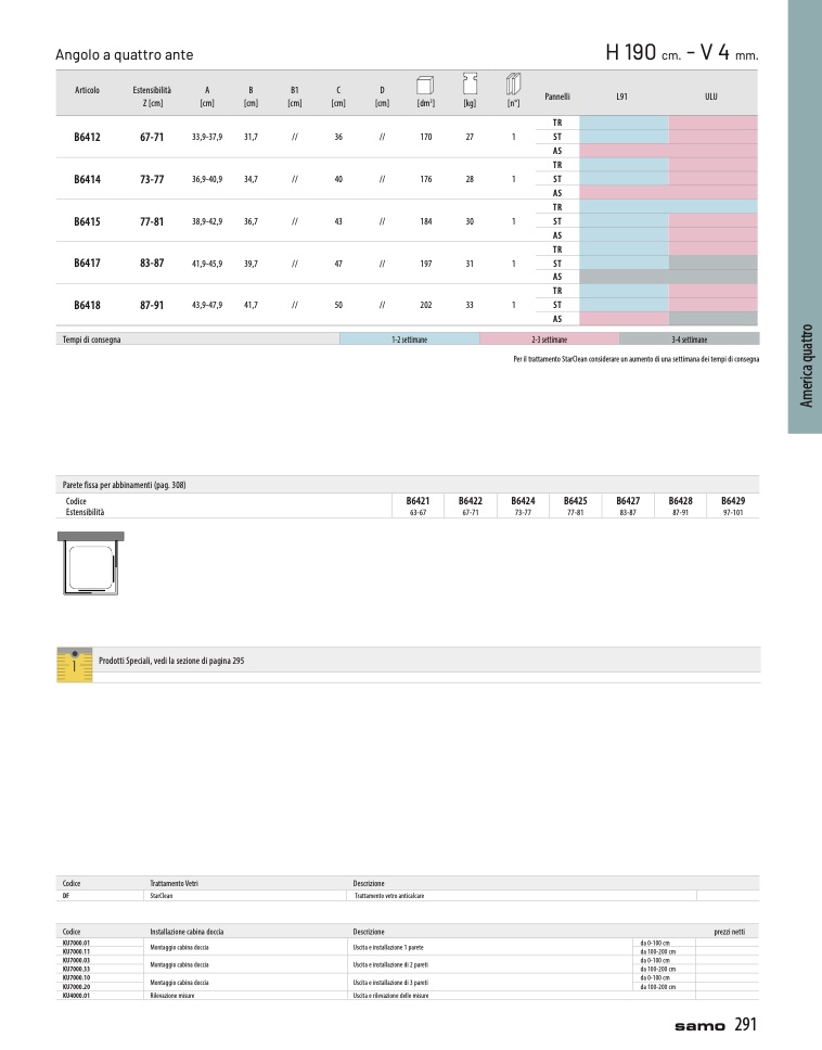 Parete fissa per abbinamenti (pag. 308)
