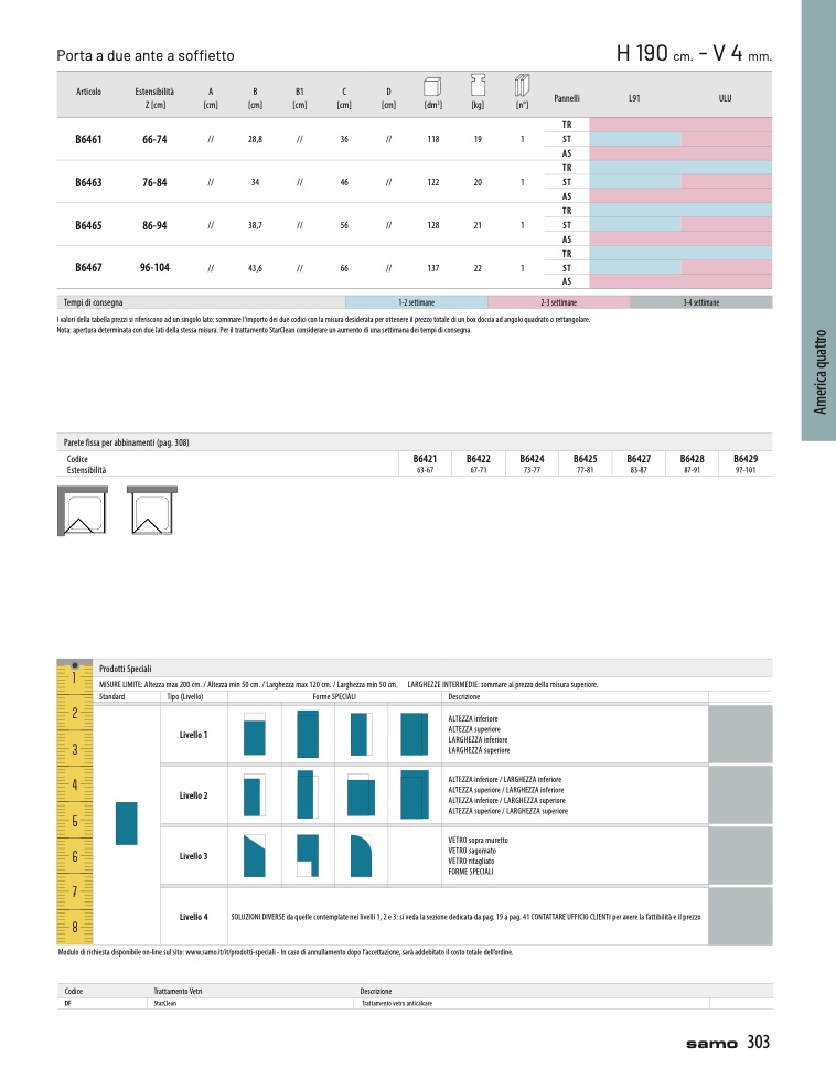 Nota: apertura determinata con due lati della stessa misura. Per il trattamento StarClean considerare un aumento di una settimana dei tempi di consegna.