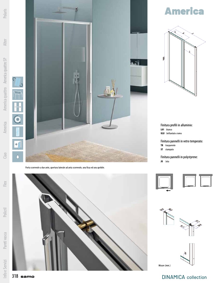 Porta scorrevole a due ante, apertura laterale ad anta scorrevole, una fissa ed una apribile.