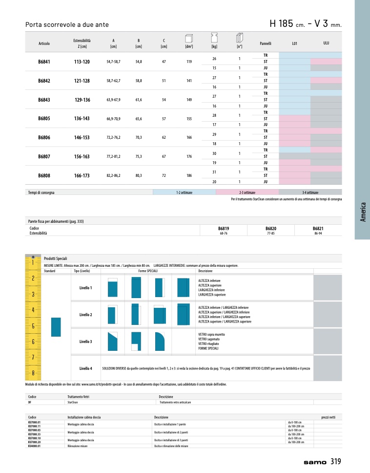 SOLUZIONI DIVERSE da quelle contemplate nei livelli 1, 2 e 3: si veda la sezione dedicata da pag. 19 a pag. 41 CONTATTARE UFFICIO CLIENTI per avere la fattibilità e il prezzo