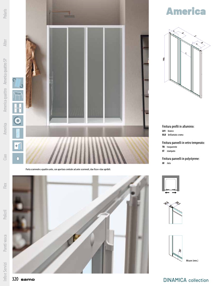 Porta scorrevole a quattro ante, con apertura centrale ad ante scorrevoli, due fisse e due apribili.
