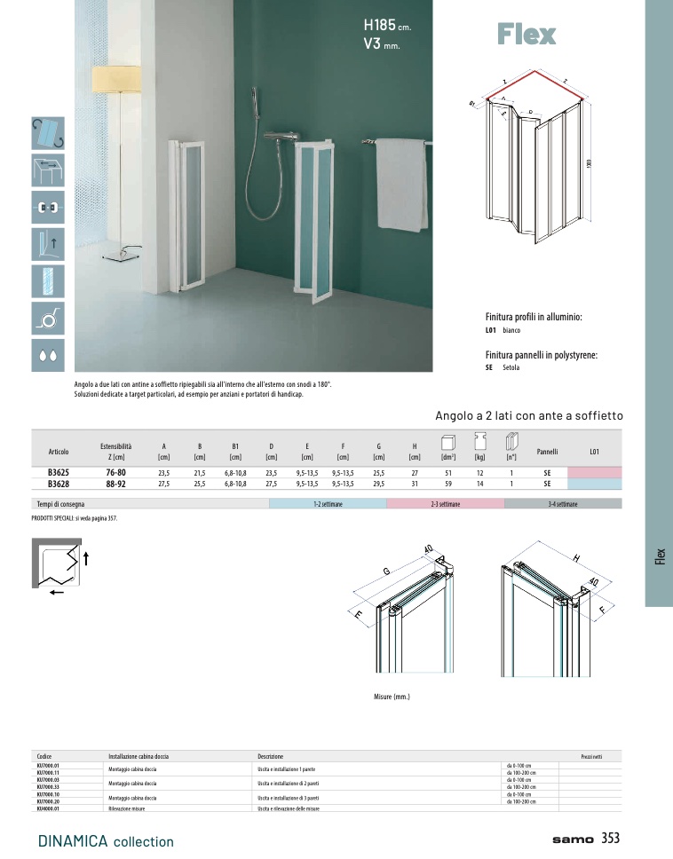 Angolo a due lati con antine a soffietto ripiegabili sia all'interno che all'esterno con snodi a 180°.