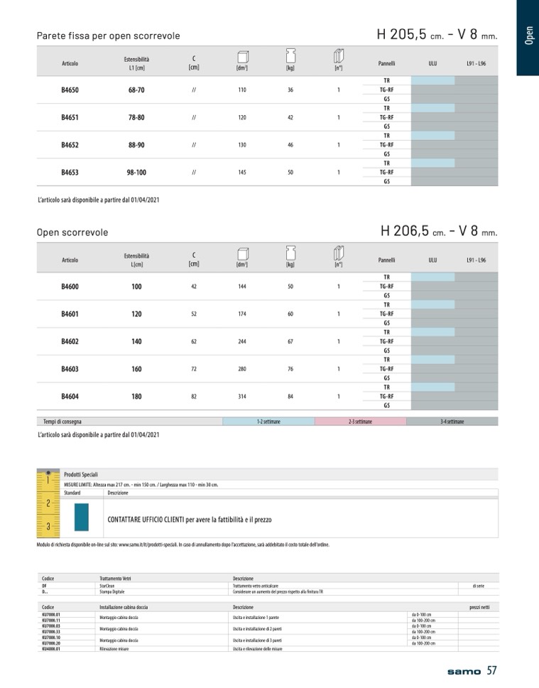 Modulo di richiesta disponibile on-line sul sito: www.samo.it/it/prodotti-speciali. In caso di annullamento dopo l'accettazione, sar