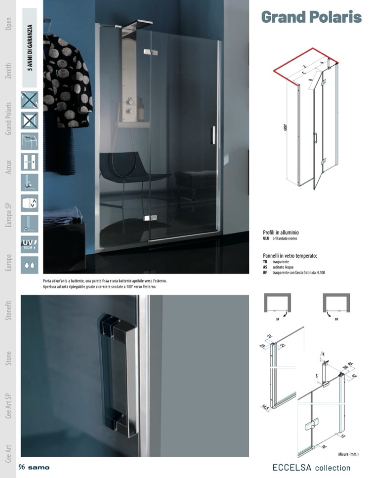 Apertura ad anta ripiegabile grazie a cerniere snodate a 180° verso l’esterno.