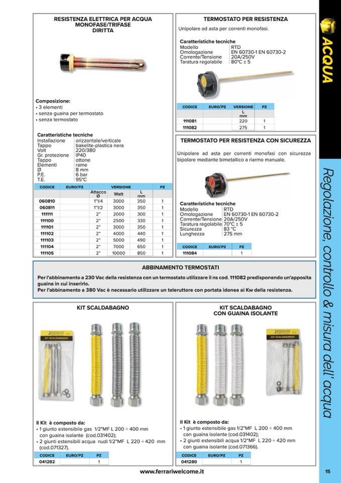 Per l’abbinamento a 230 Vac della resistenza con un termostato utilizzare il ns cod. 111082 predisponendo un’apposita
