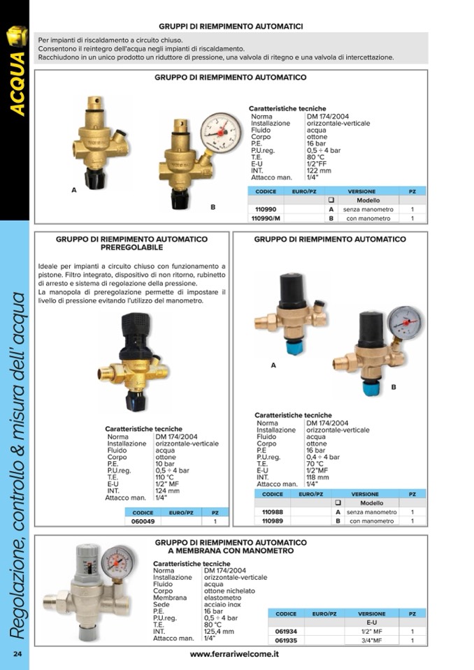 Racchiudono in un unico prodotto un riduttore di pressione, una valvola di ritegno e una valvola di intercettazione.