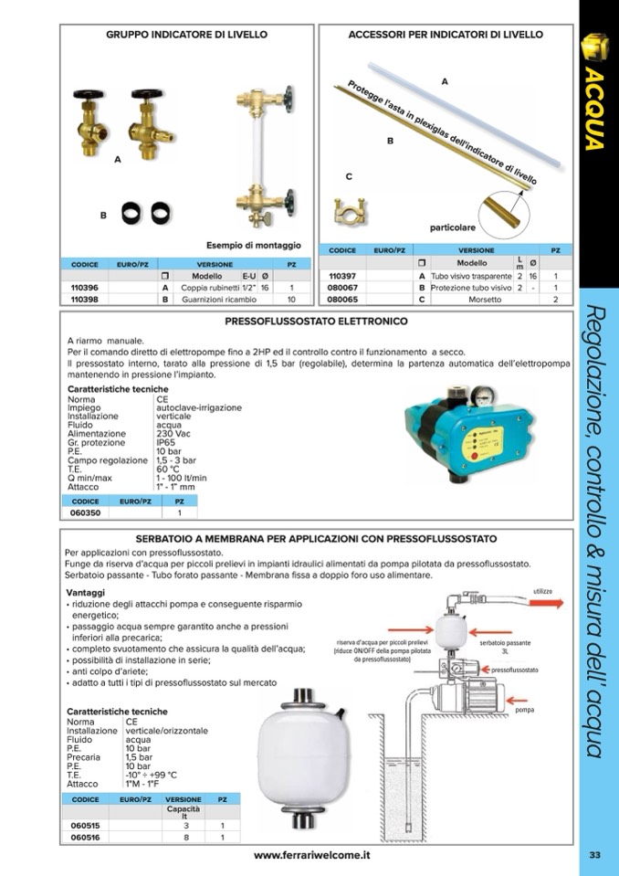 Funge da riserva d’acqua per piccoli prelievi in impianti idraulici alimentati da pompa pilotata da presso