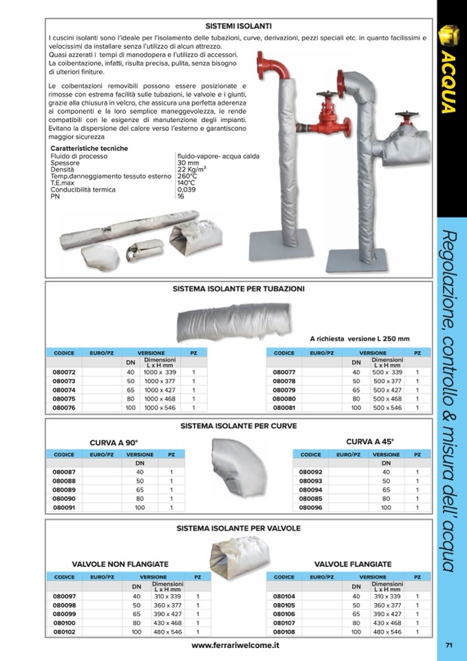 I cuscini isolanti sono l’ideale per l’isolamento delle tubazioni, curve, derivazioni, pezzi speciali etc. in quanto facilissimi e
