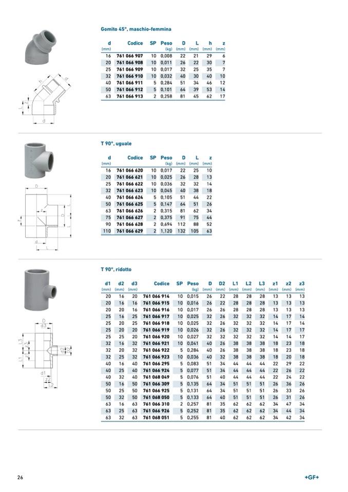 Gomito 45°, maschio-femmina
