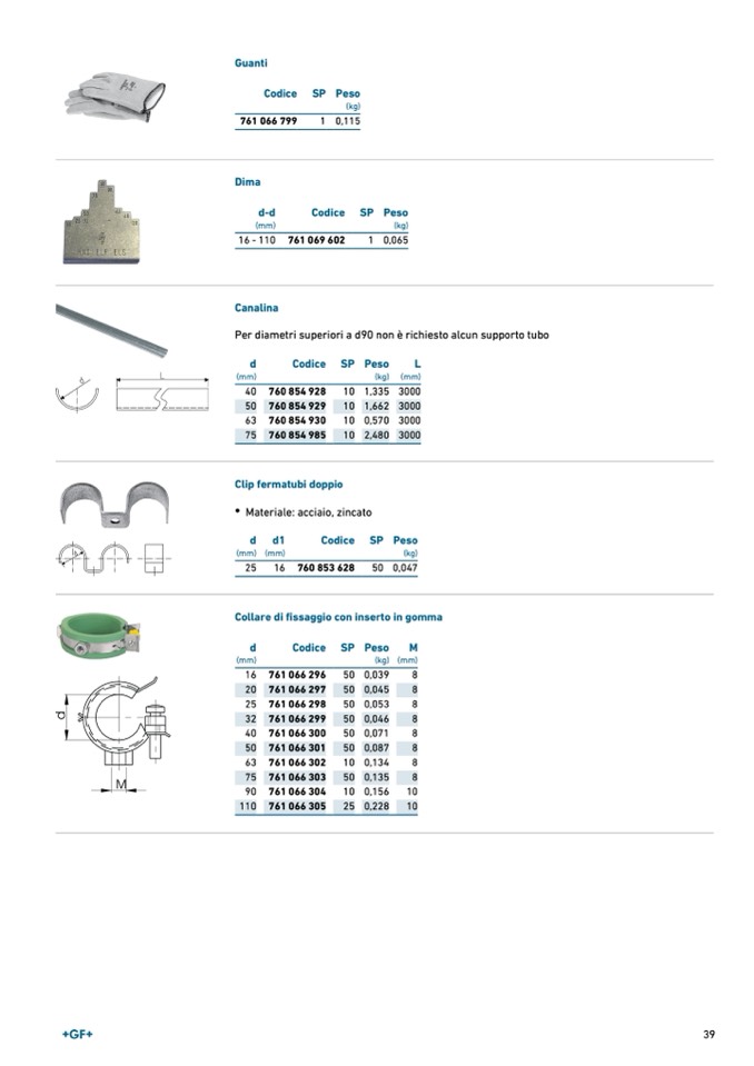 Per diametri superiori a d90 non è richiesto alcun supporto tubo