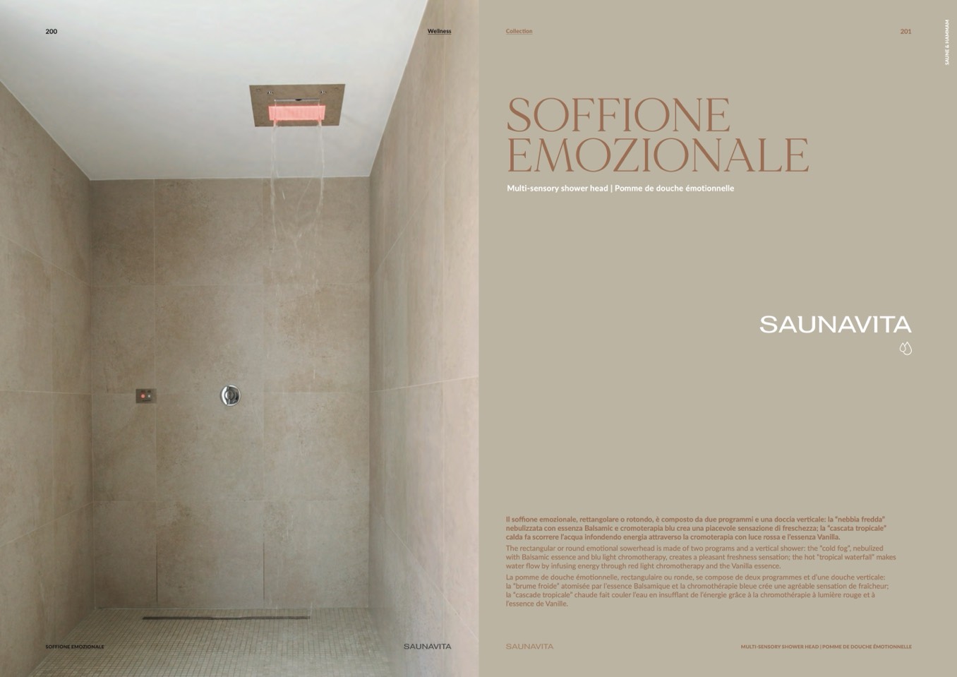 tional sowerhead is made of two programs and a vertical shower: the “cold fog”, nebulized