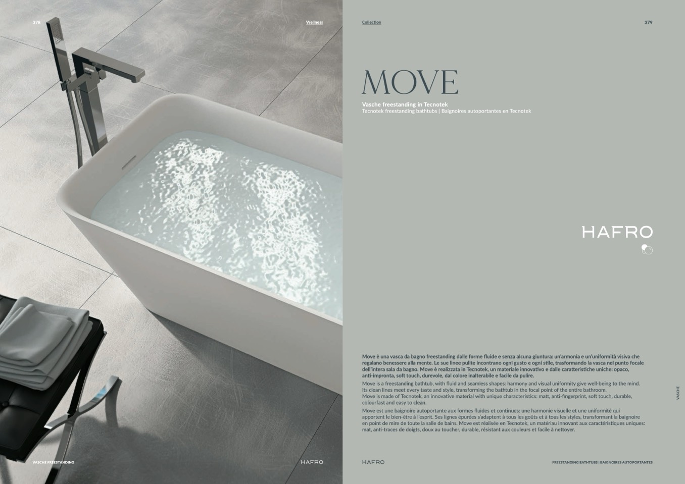 Move est une baignoire autoportante aux formes fluides et continues: une harmonie visuelle et une uniformit