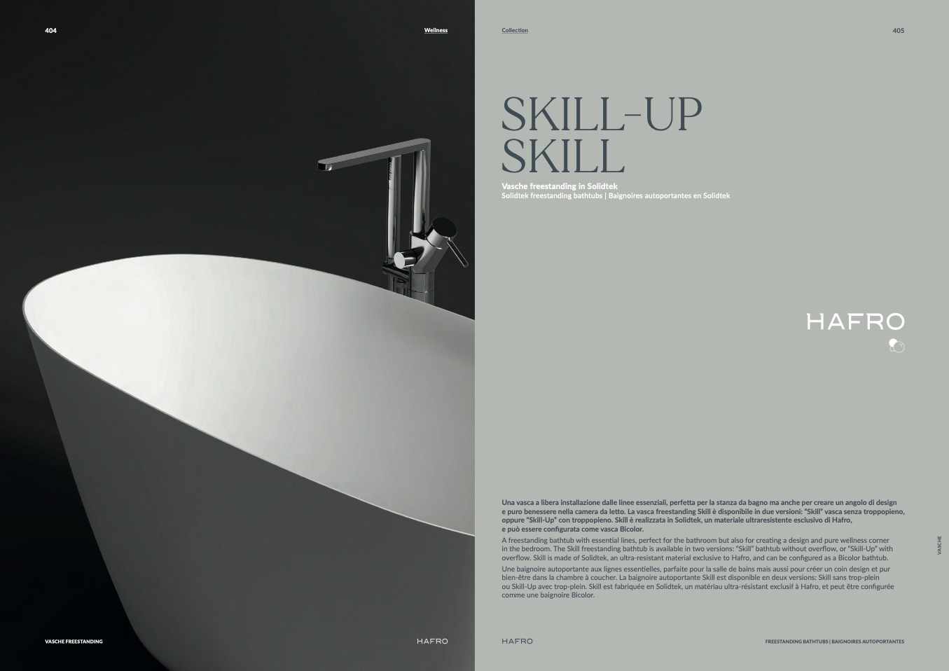 flow. Skill is made of Solidtek, an ultra-resistant material exclusive to Hafro, and can be configured as a Bicolor bathtub.