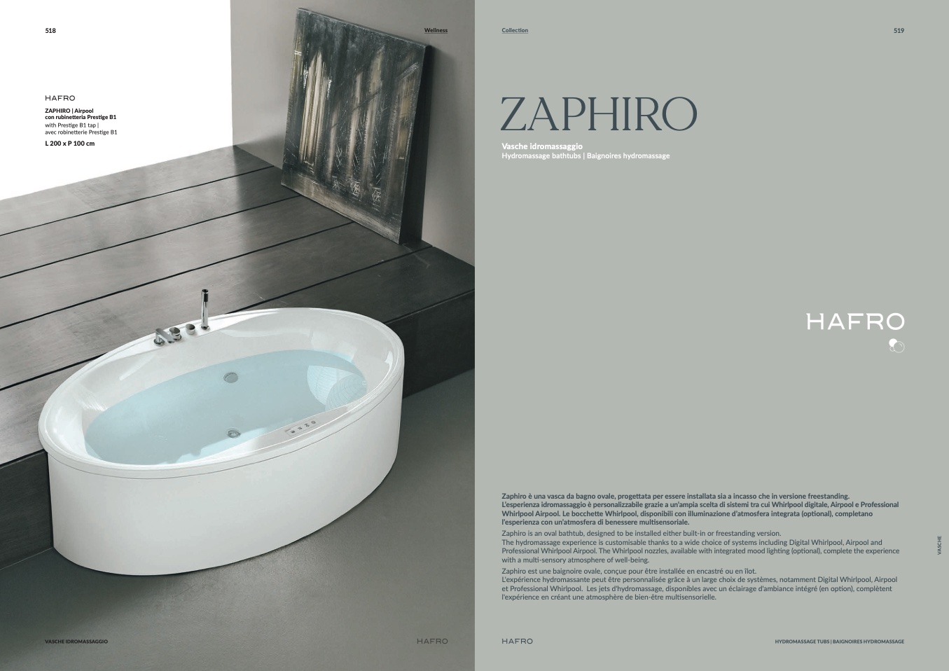 Zaphiro is an oval bathtub, designed to be installed either built-in or freestanding version.