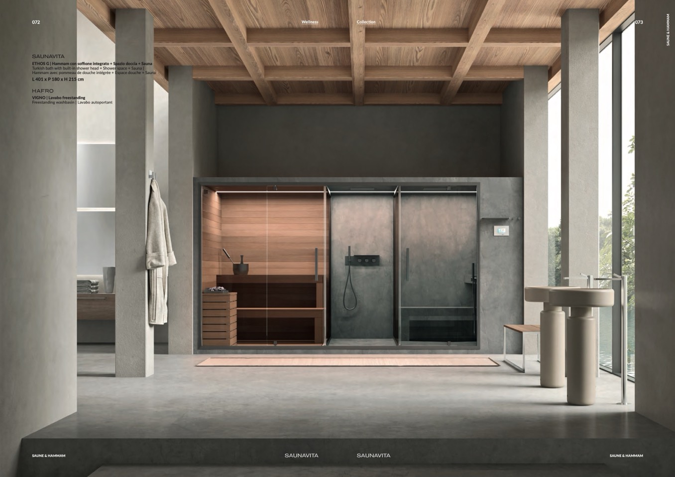 Turkish bath with built-in shower head + Shower space + Sauna |