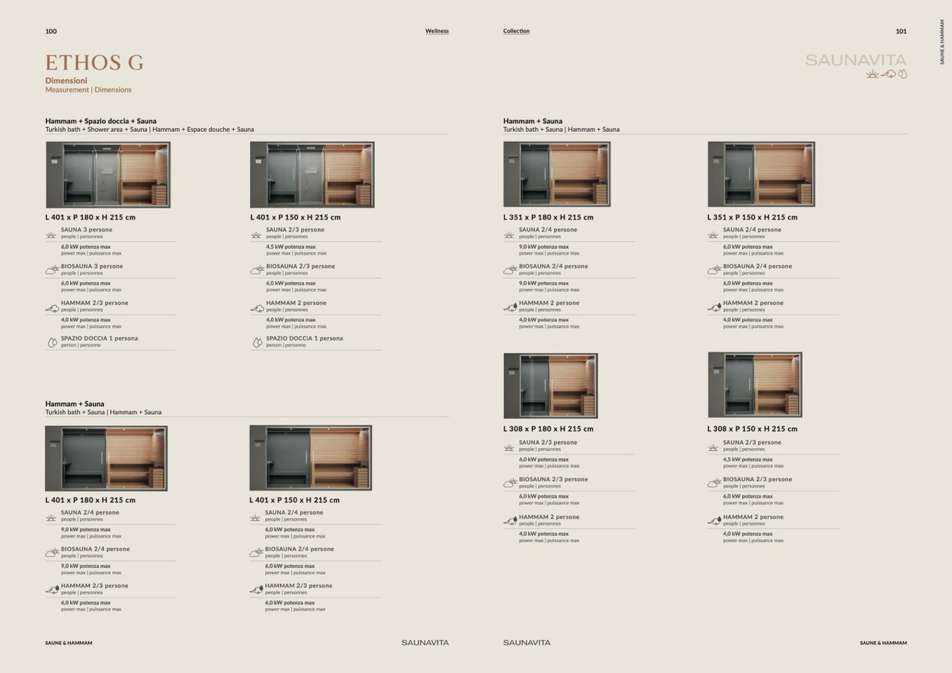 Turkish bath + Shower area + Sauna | Hammam + Espace douche + Sauna