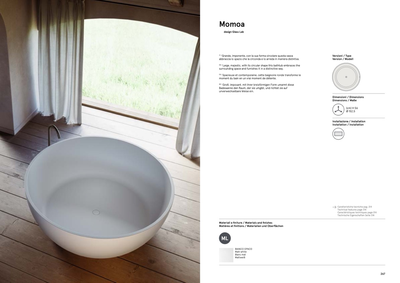 Large, majestic, with its circular shape this bathtub embraces the