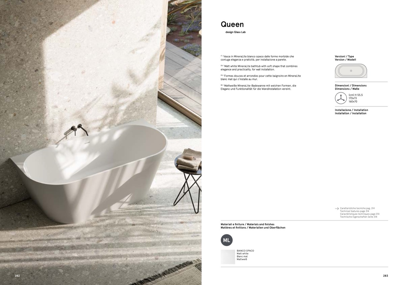 Vasca in MineraLite bianco opaco dalle forme morbide che