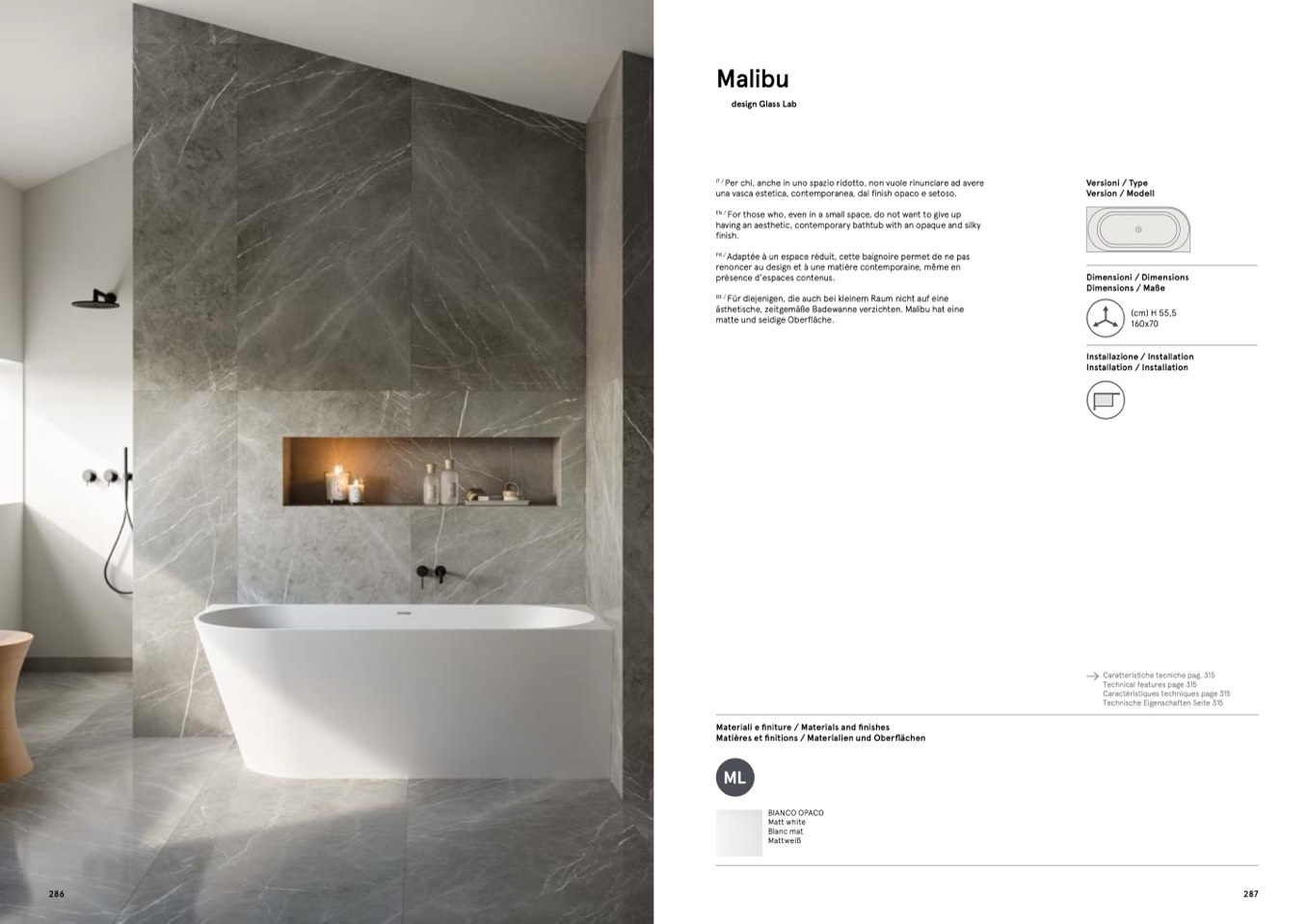una vasca estetica, contemporanea, dal finish opaco e setoso.