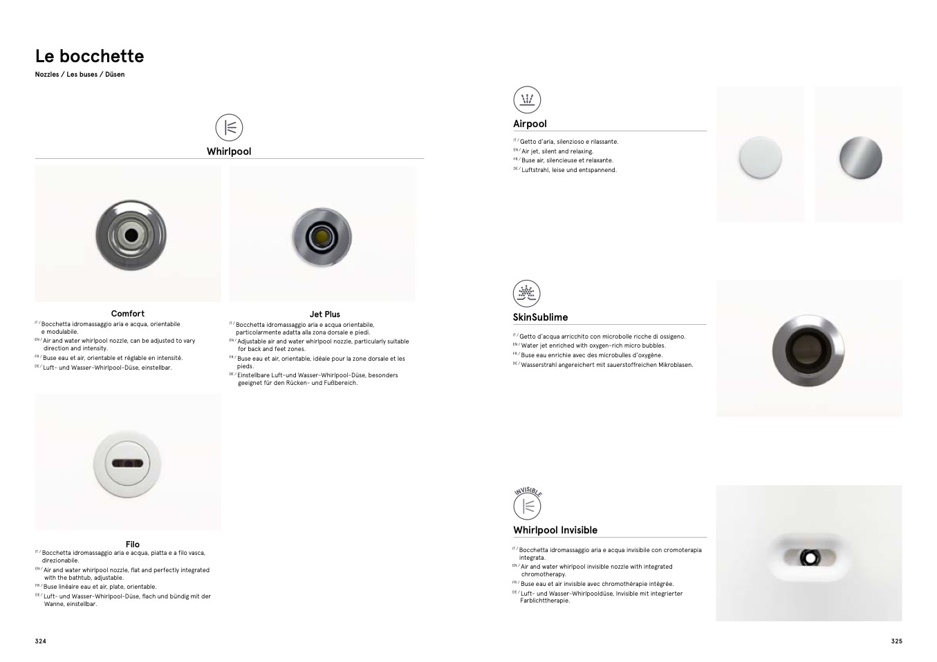 Bocchetta idromassaggio aria e acqua, piatta e a filo vasca,