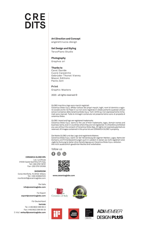 reserved. All images contained in this price list are CERAMICA GLOBO ‘s property.