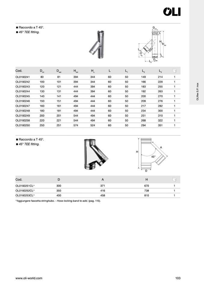 Raccordo a T 45°.