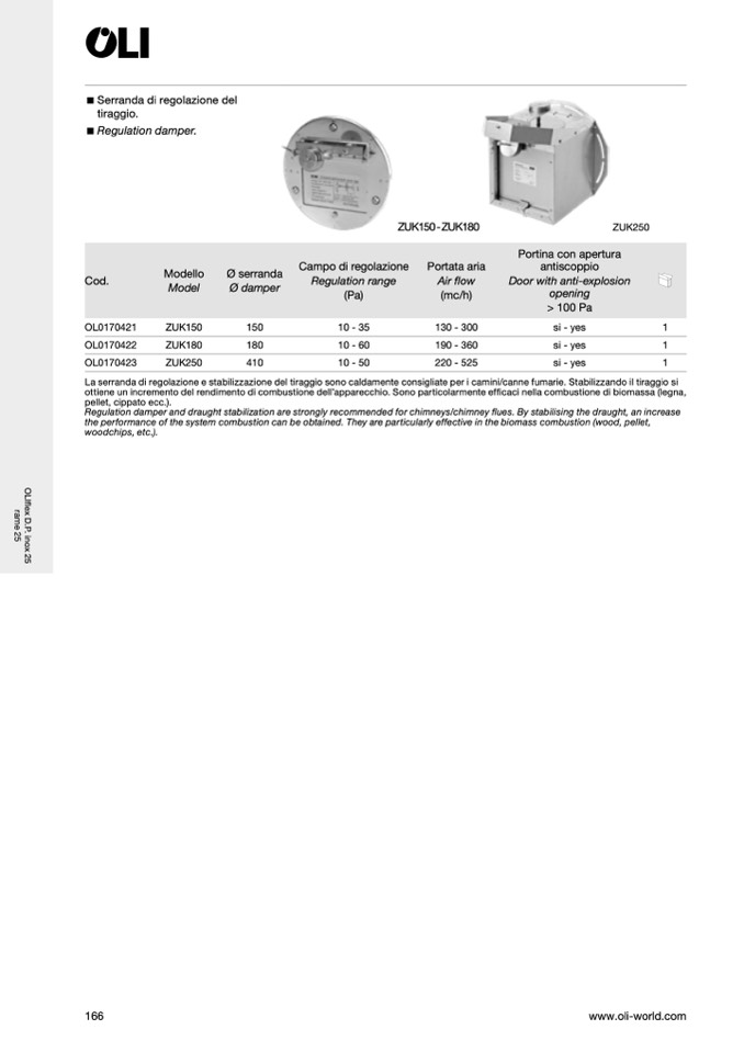 La serranda di regolazione e stabilizzazione del tiraggio sono caldamente consigliate per i camini/canne fumarie. Stabilizzando il tiraggio si