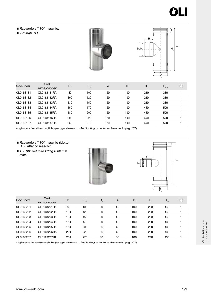 Aggiungere fascetta stringitubo per ogni elemento. - Add locking band for each element. (pag. 207).
