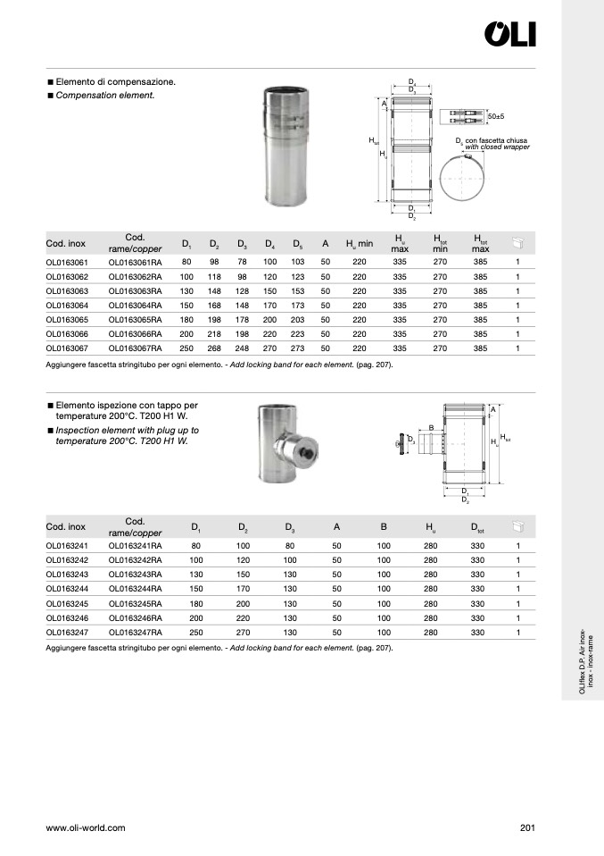 Aggiungere fascetta stringitubo per ogni elemento. - Add locking band for each element. (pag. 207).