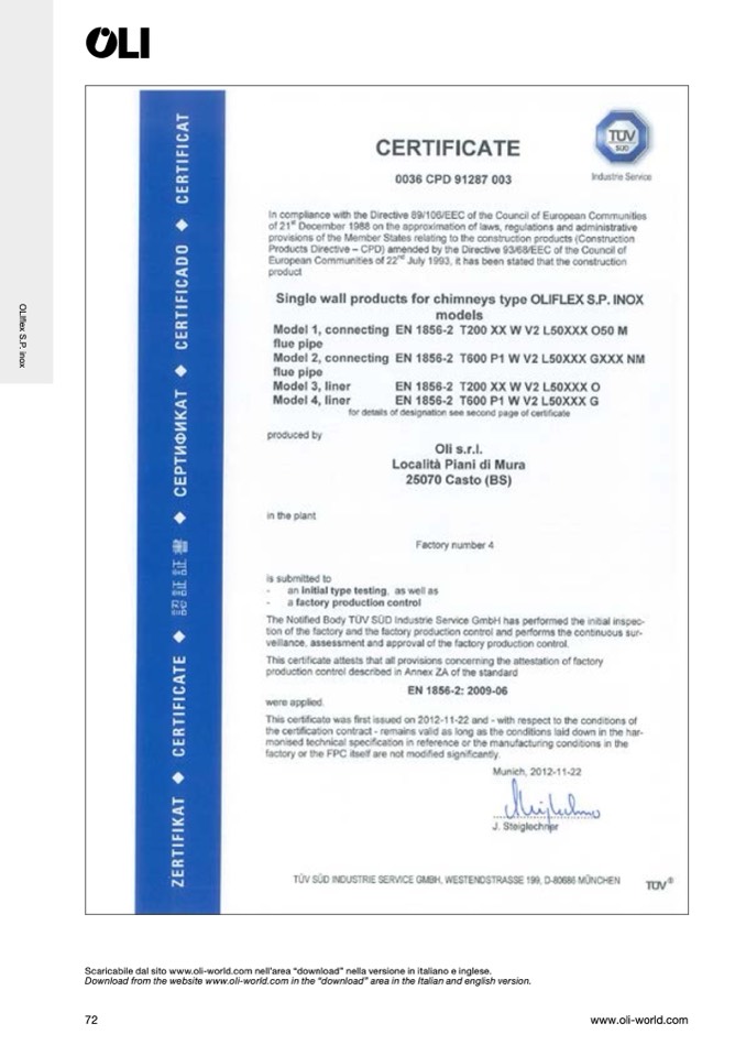 Scaricabile dal sito www.oli-world.com nell’area “download” nella versione in italiano e inglese.